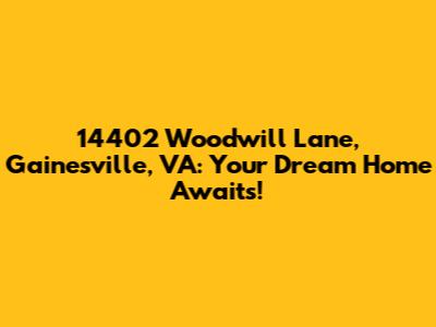 Hey guys, are you on the hunt for a seriously awesome place to call home? Well, buckle up, because we're about to dive deep into 14402 Woodwill Lane in Gainesville, Virginia. This isn't just any address; it's a gateway to a lifestyle you've probably been dreaming about. We're talking about a property that blends comfort, style, and that perfect suburban vibe. Gainesville itself is a gem, offering a fantastic balance between peaceful living and easy access to all the action. So, if you're looking for a place that ticks all the boxes – from spacious interiors to a friendly neighborhood – then stick around. We're going to explore why this particular spot at 14402 Woodwill Lane might just be the one you've been searching for. Get ready to be impressed, because this property and its location are truly something special.