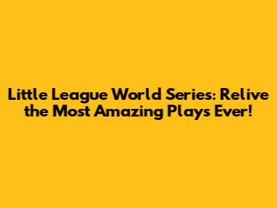 Best Little League World Series Plays Ever