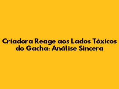 Criadora Reage Aos Lados Tóxicos Do Gacha: Análise Sincera