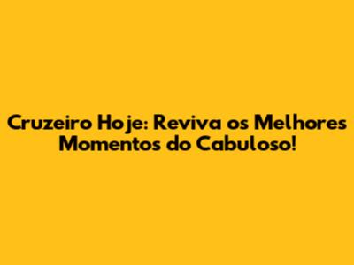 Cruzeiro Hoje: Reviva Os Melhores Momentos Do Cabuloso!