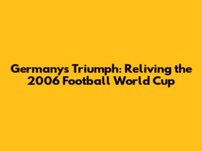 Germany's Triumph: Reliving The 2006 Football World Cup