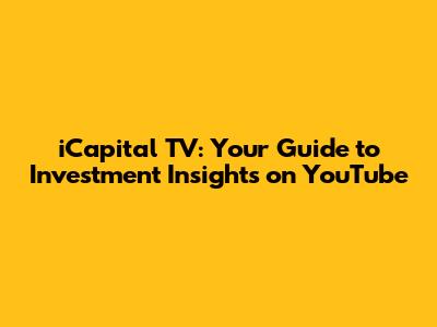 ICapital TV: Your Guide To Investment Insights On YouTube