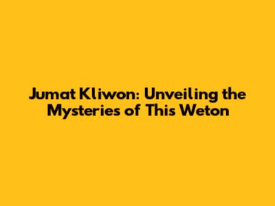 Jumat Kliwon: Unveiling The Mysteries Of This Weton