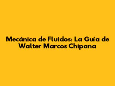 Mecánica De Fluidos: La Guía De Walter Marcos Chipana