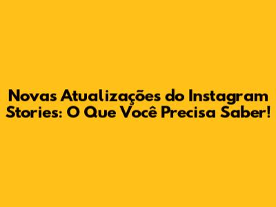 Novas Atualizações Do Instagram Stories: O Que Você Precisa Saber!