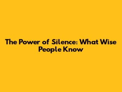 The Power Of Silence: What Wise People Know